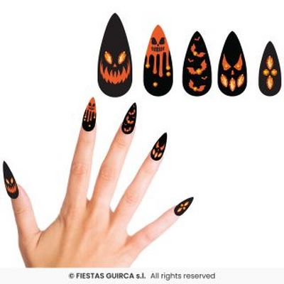 Pompoen nagels met lijm en juweeltjes